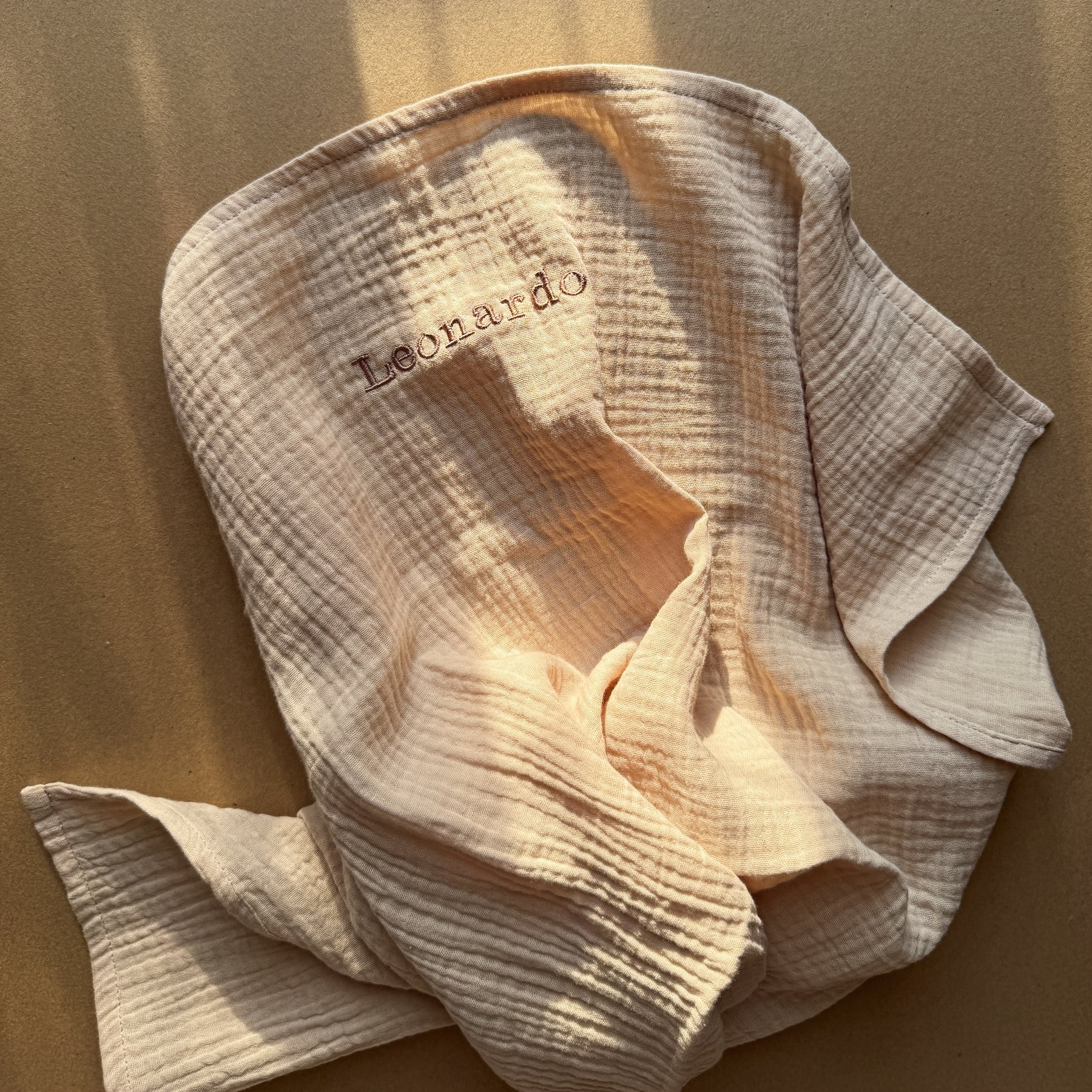 Il tessuto in mussola è leggero, morbido e ipoallergenica: fornendo un tocco molto piacevole è perfetta per la pelle delicata del bambino.