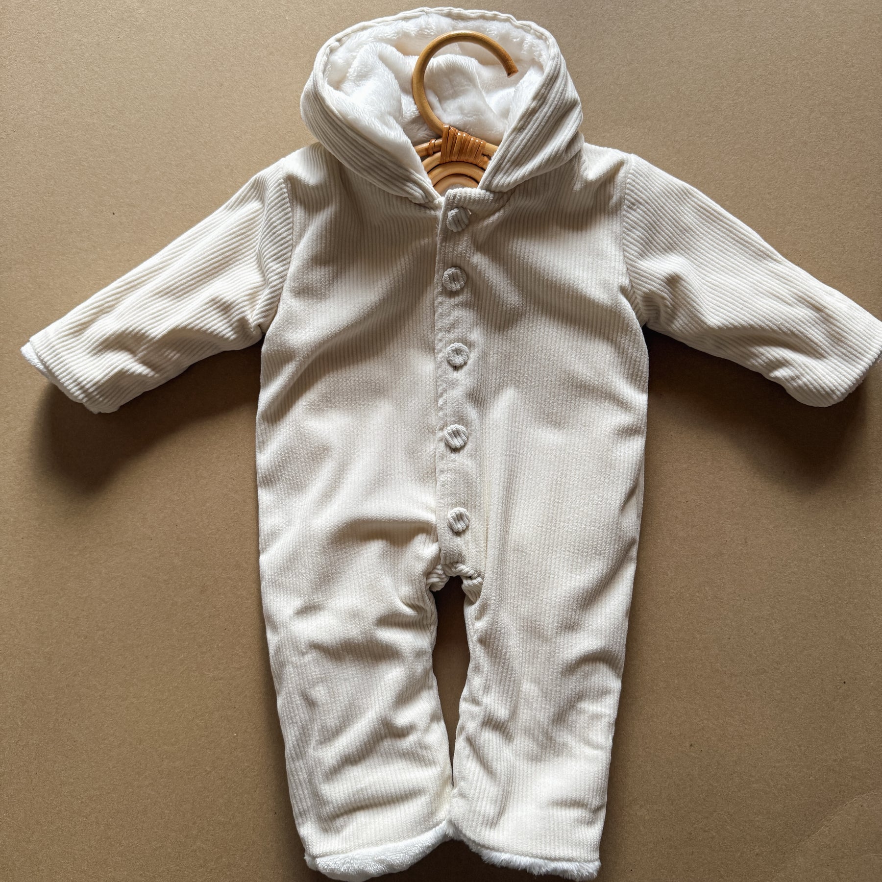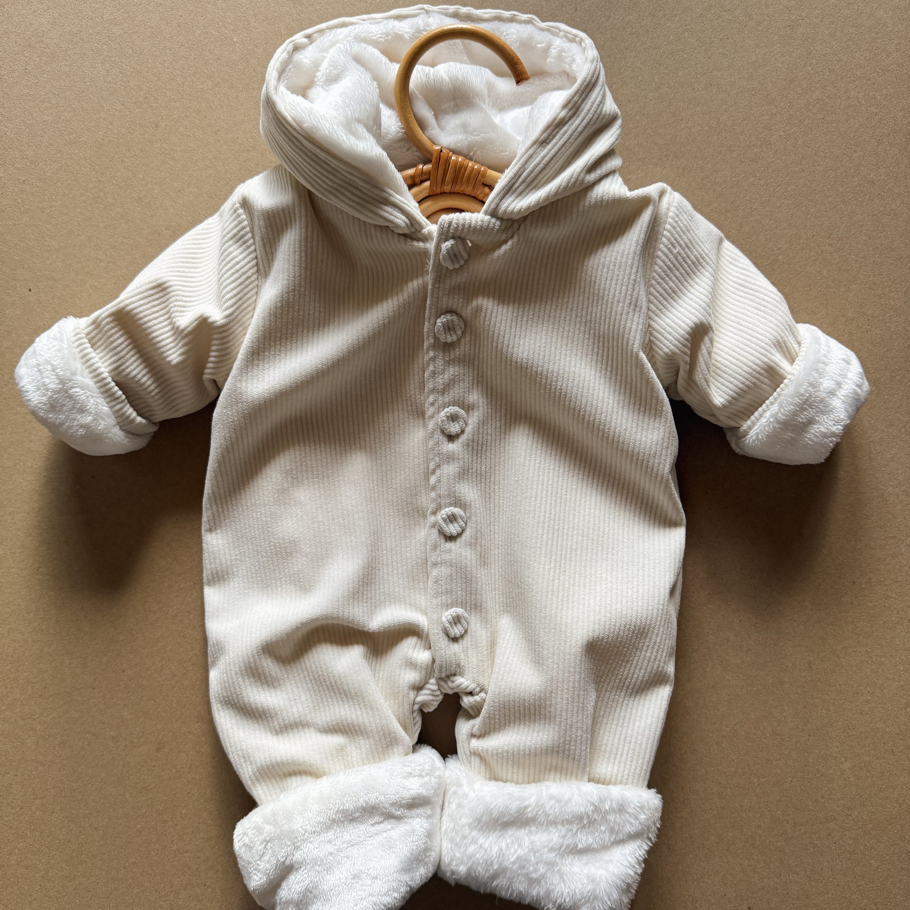 Realizzata in veluto a costine morbidissimo, è pensata per avvolgere il tuo bebè con delicatezza fin dai primi giorni.